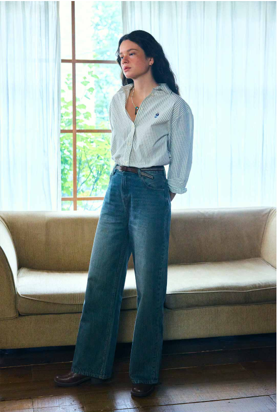 Cuối cùng, Wide Denim (F) kết lại bộ sưu tập bằng một vẻ đẹp phóng khoáng hơn cả. Quần denim ống rộng, thả dáng dài trên đôi boots, mang hơi thở tự do không ràng buộc. Đây là chiếc quần dành cho những ai thích cảm giác thoải mái tuyệt đối, nhưng vẫn giữ được vẻ thanh lịch. Khi kết hợp cùng sơ mi sọc, outfit trở nên vừa casual, vừa đủ tinh tế để hiện diện ở bất kỳ đâu: một quán cà phê yên tĩnh hay một buổi đi dạo cuối tuần.