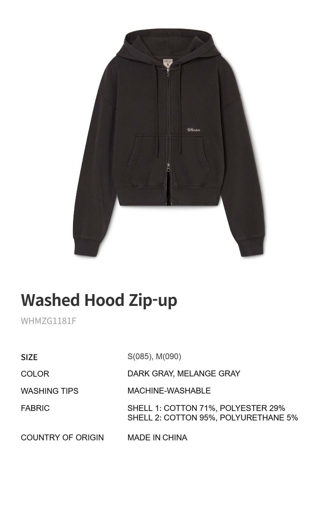 Washed Hood Zip-up