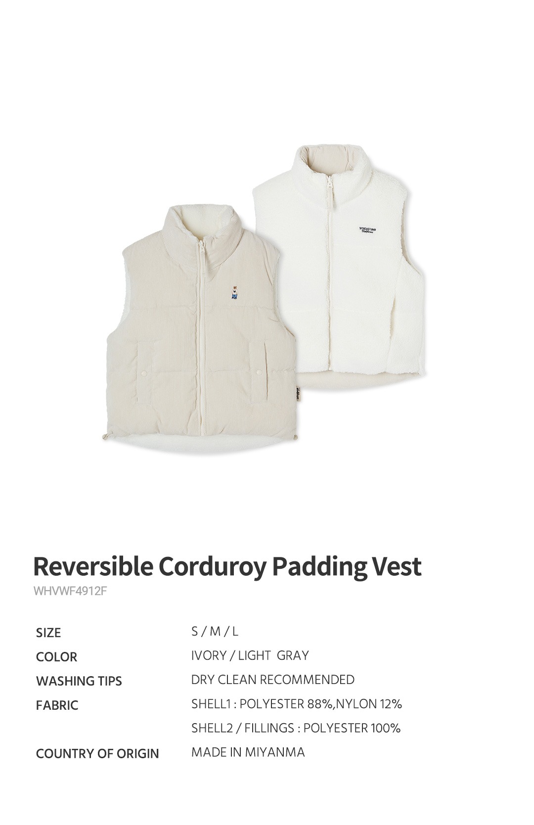 WHOAU Áo khoác hai mặt Reversible Corduroy Padding Vest_WHVWF4912F
