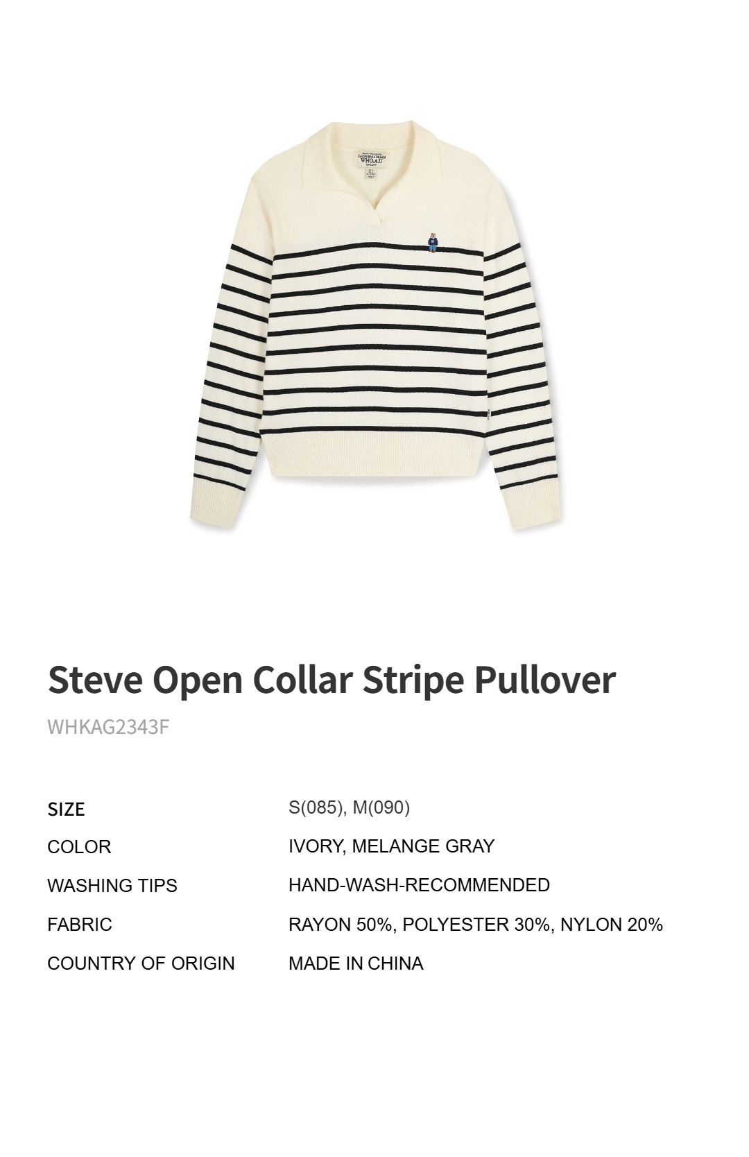 WHOAU Áo len nữ Steve Open Collar Stripe Pullover_WHKAG2343F