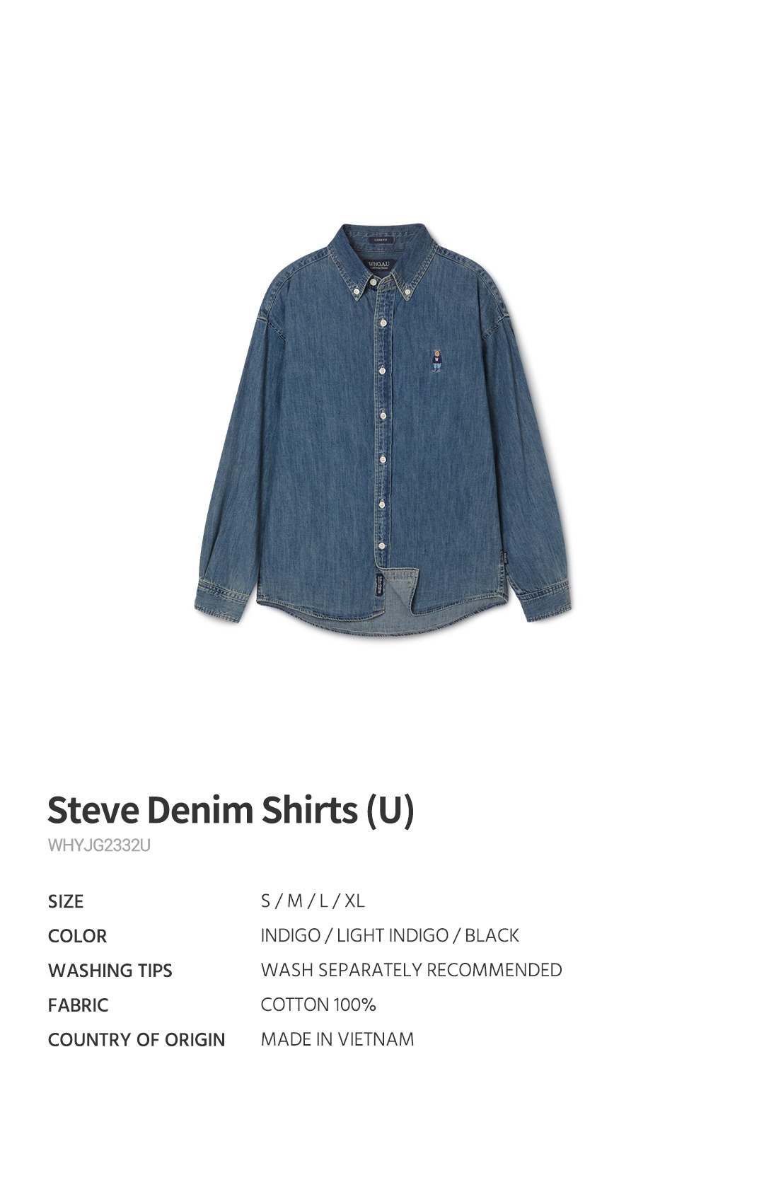 WHOAU Áo sơ mi UNISEX Steve Denim Shirts (U)_WHYJG2332U