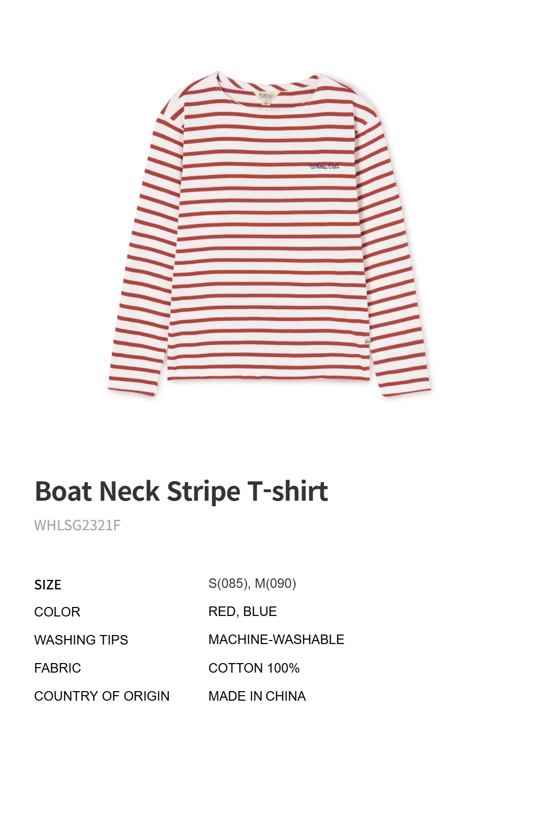 WHOAU Áo thun nữ Boat Neck Stripe T-shirt_WHLSG2321F