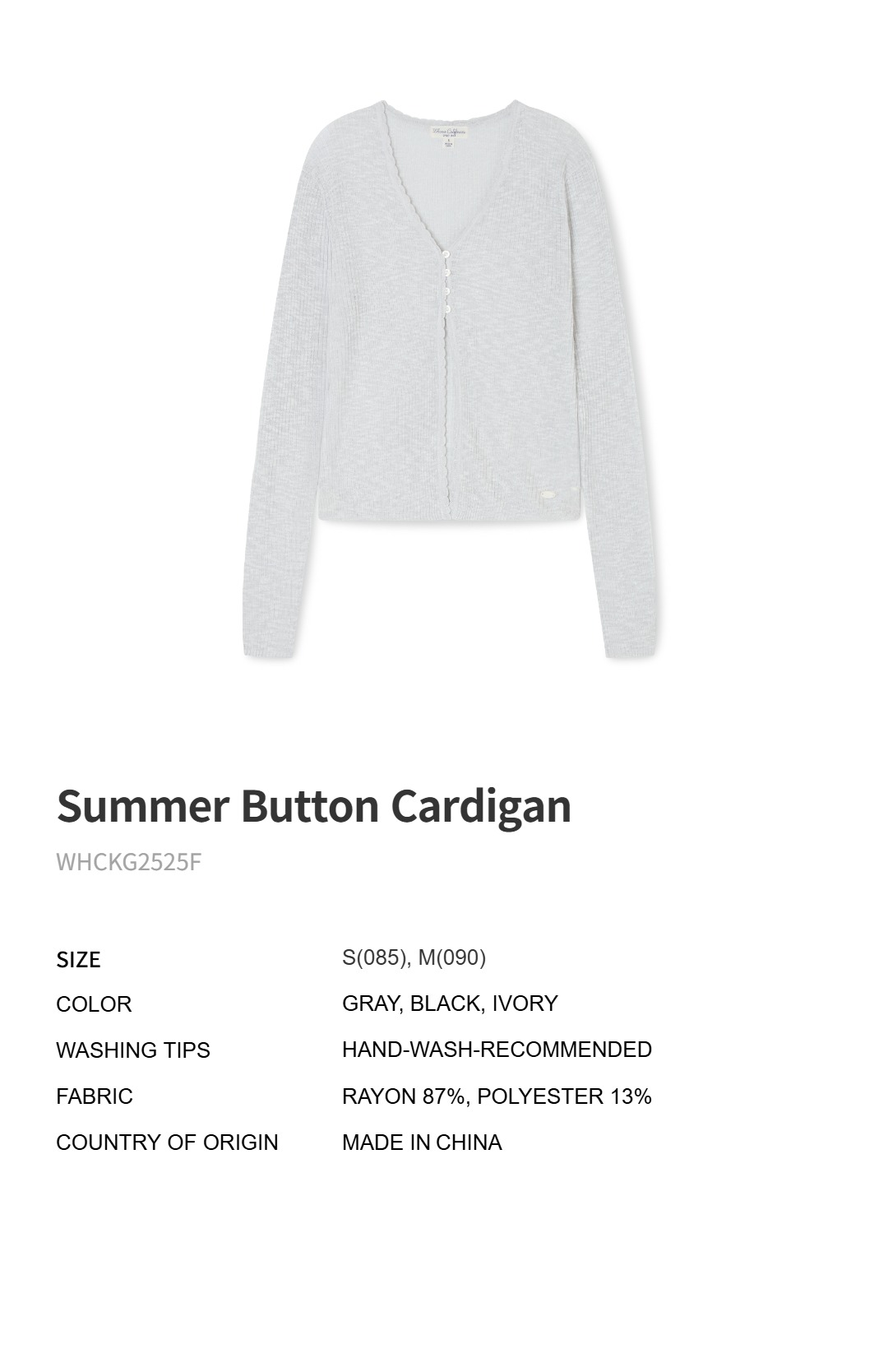 WHOU Áo len mỏng Summer Button Cardigan_WHCKG2525F